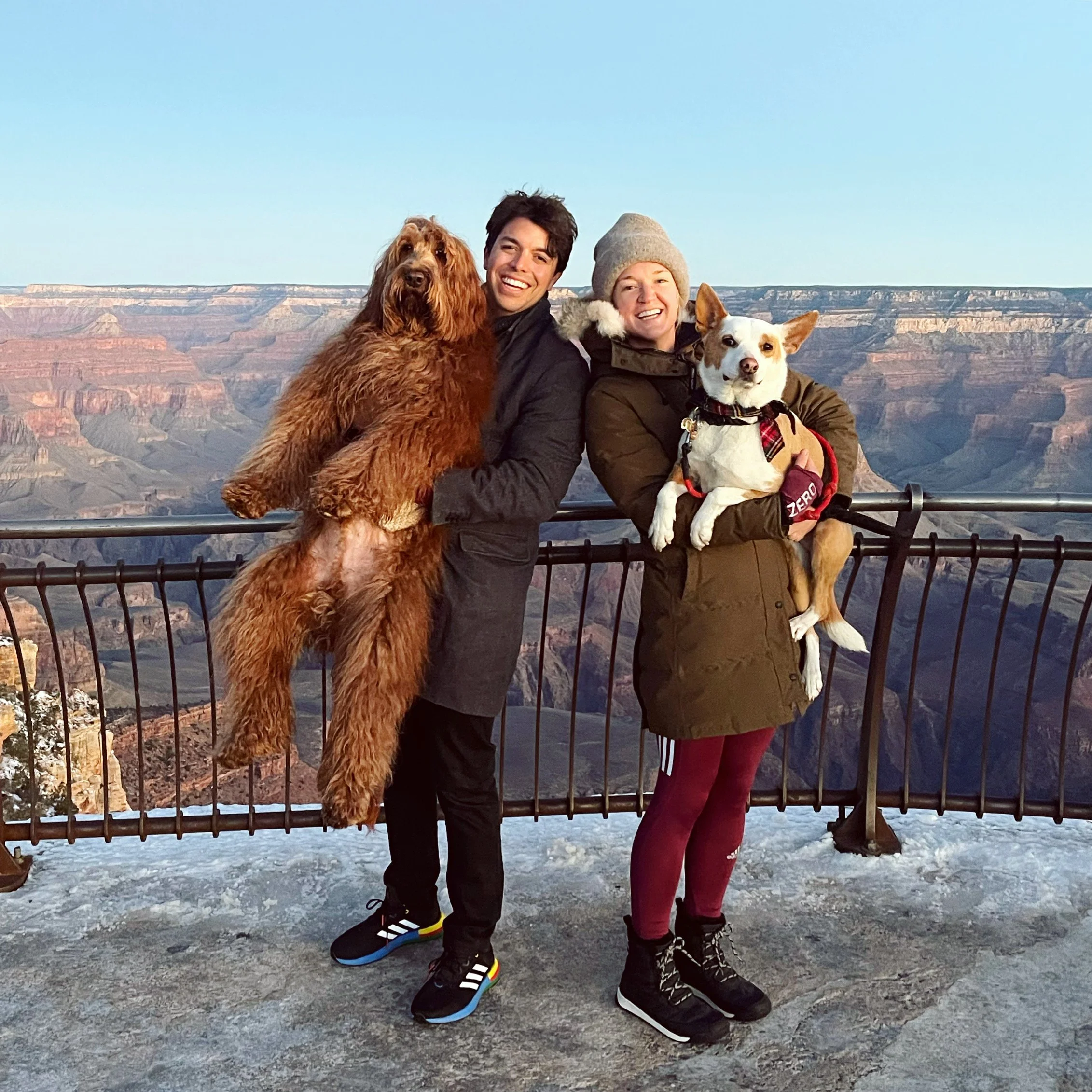 In 2020, we had our first date on the beach in Venice, with our dogs, Bette and Oscar. When Fernie saw Max, she instantly knew he was her person. In her head, she literally thought, “Oh, it’s my person!” (The fact that Max was walking a giant fluffy dog didn’t hurt, but it was really his huge, warm smile, friendly wave, positive attitude, and lunchbox full of charcuterie that won her over in that moment.) It was also pretty great that Bette and Oscar got along so well, too.