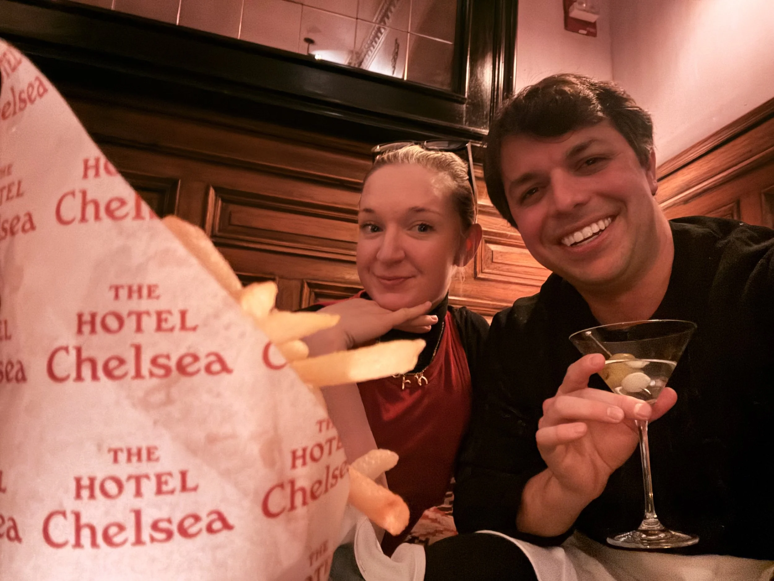 Anyway, murder and death aside, it really is a magical spot. The vibe is so New York. It’s definitely a “special occasion” hotel! But we’ve had so many nights just lounging in the lobby, people-watching, eating a bouquet of fries, and enjoying espresso martinis. Hey - here we are doing that. In this pic!